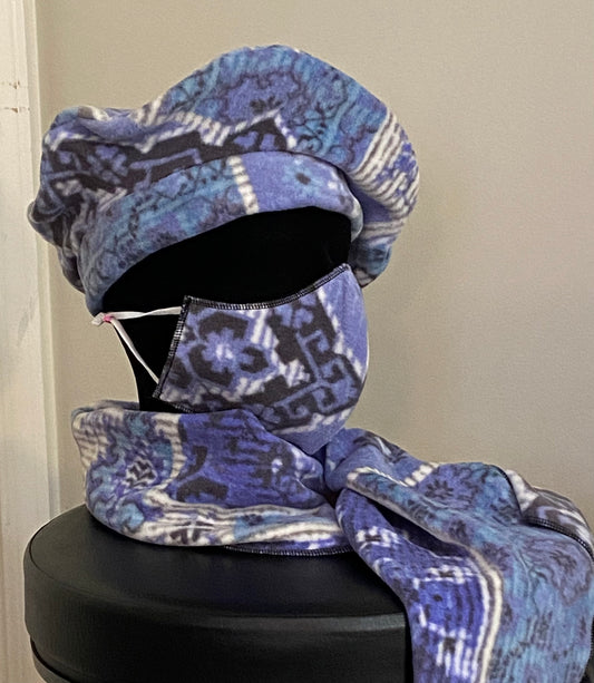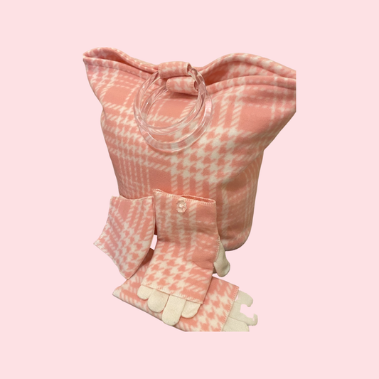 Fleece Cardigan Sets come complete with matching Cardigan, Tam Hat, Scarf, Bag and Face Mask.